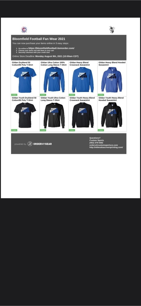 Our 2nd order of track apparel will be open until 10:00 am on April 11th. Please share this link with everyone as many ways as you can so everyone is sure to get their orders in. This will be the last order. https://bloomfield-track-and-field-fan-wear-2022-2.itemorder.com/shop/sale/