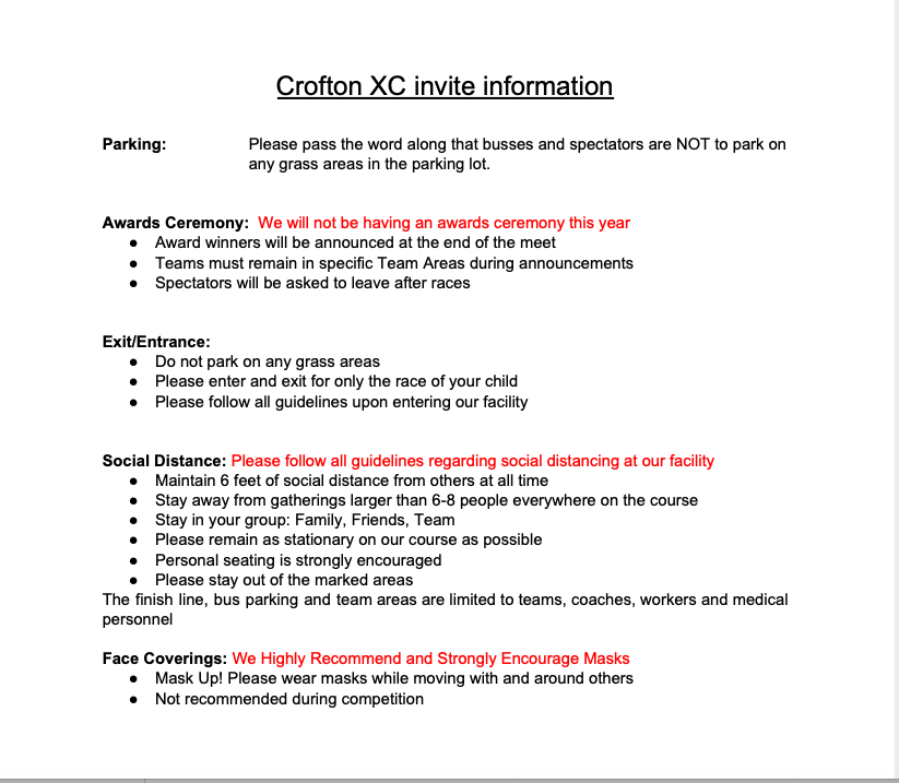 Here are the COVID 19 Protocols for Neligh-Oakdale. Along with the order of events for the Warrior relays.
